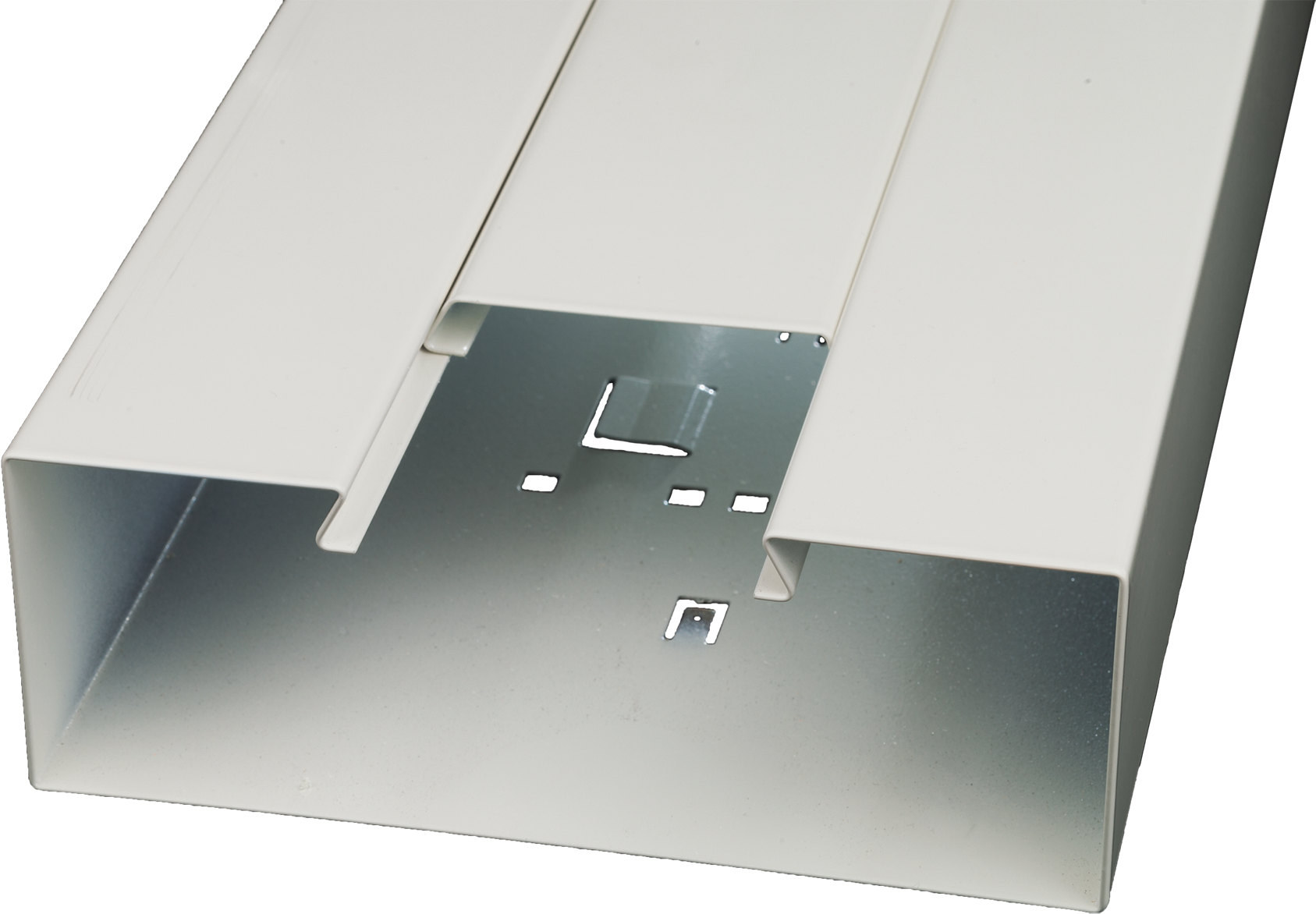 - Lieferumfang: Unterteil mit Bodenlochungen (Abstand 250 mm) und Bodenlaschen (Abstand 250 mm) für Trennstegaufnahme; Länge 2 m; Deckel separat bestellen