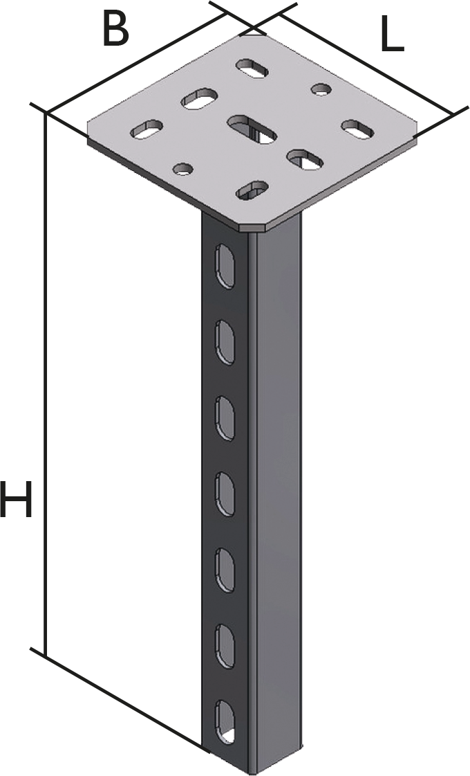 | Mit angeschweißter Kopfplatte 135 x 135 mm, Stielprofil 41 x 41 mm |