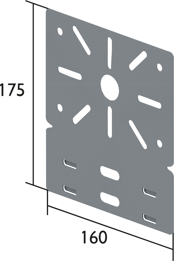 | Type KBL-MPS Montageplatte 175 x 160 mm, 1 mm Stahlblech, Sendzimirverzinkt | Type of fastening Click in mounting | Surface protection Continuously galvanised | Product nr. 801636 | keyboard_arrow_down | |