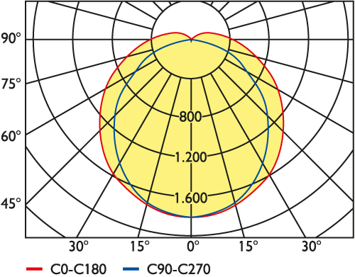 - Opale Abdeckung (130° breitstrahlend) sorgt für homogene Grundbeleuchtung und gleichmäßig, diffuse Ausleuchtung der Nutzebene
