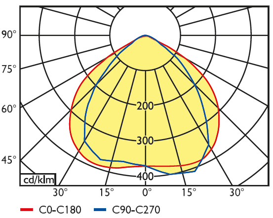 - Linsenoptik aus Polycarbonat mit 90° Abstrahlcharakteristik