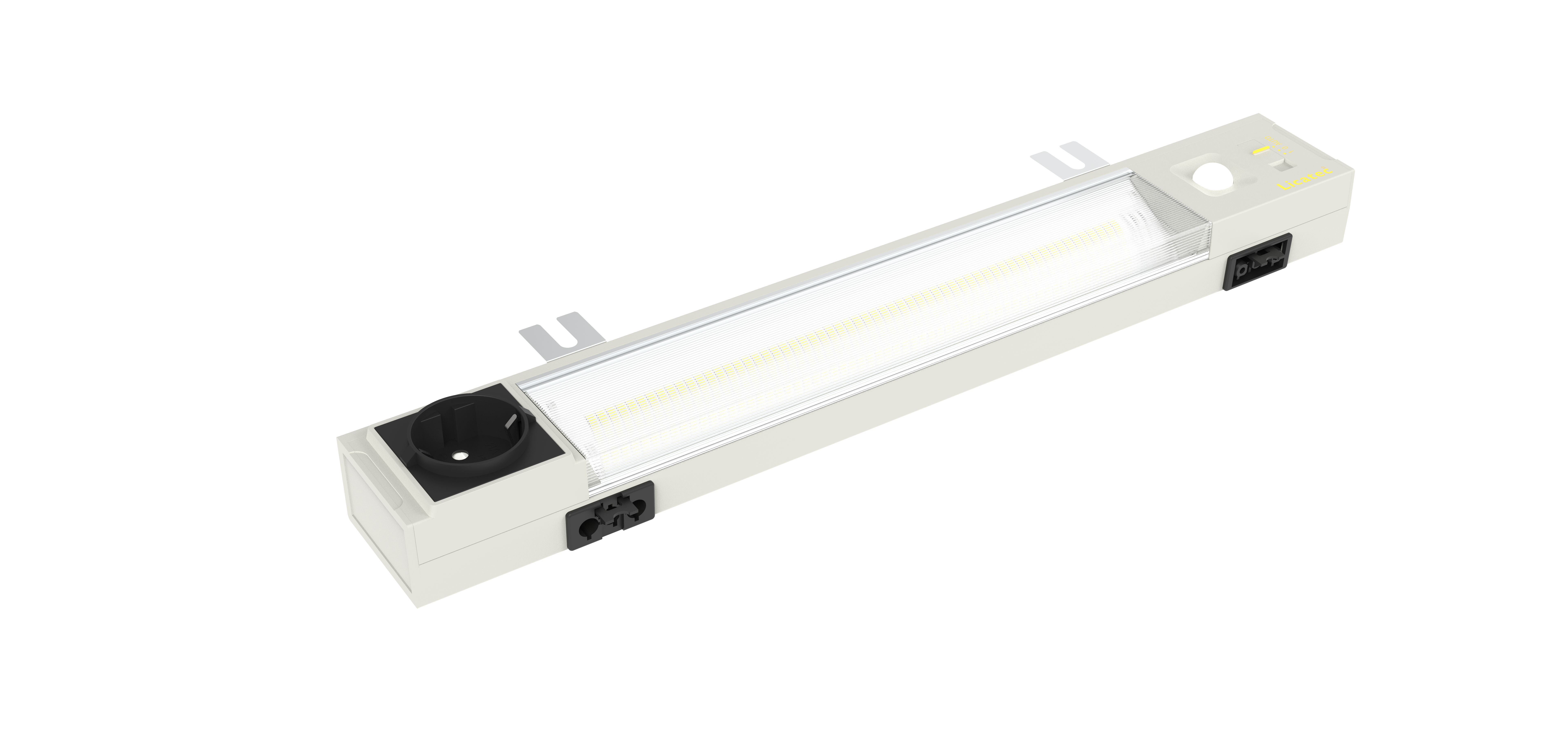 Schaltschrankleuchte mit Steckdose Montagewinkel abnehmb. /4000K L440mm/1800lm/RAL 7035/14W/BW